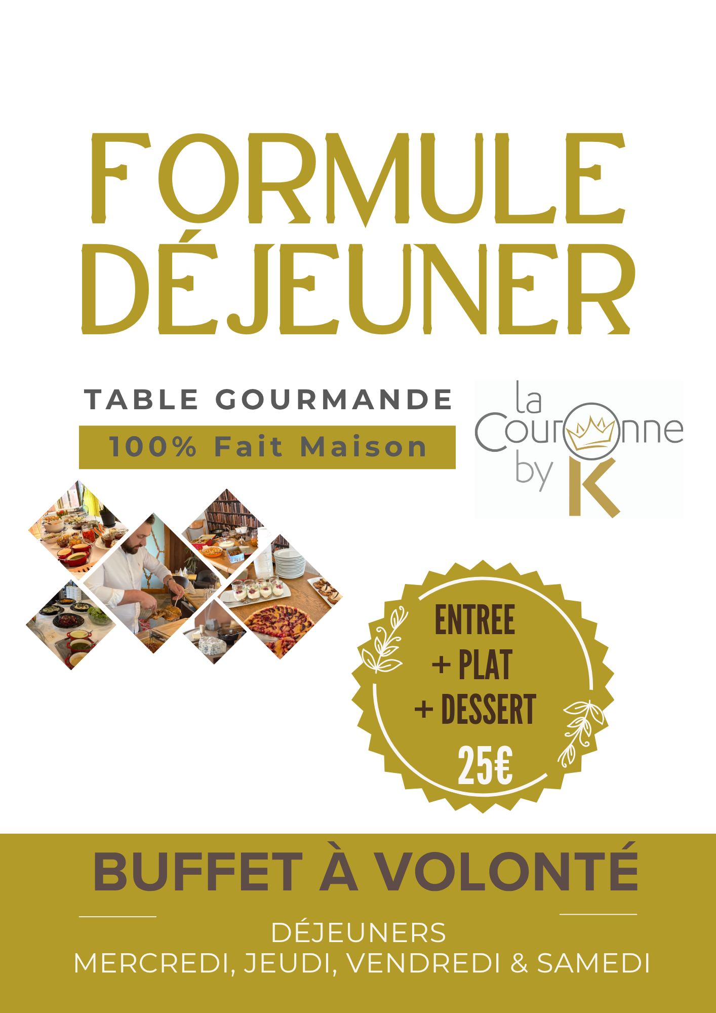 Du Mercredi au Samedi pour le Déjeuner, nous vous proposons notre Formule Déjeuner Entrée & Dessert sous forme de buffet à volonté, et un Plat.